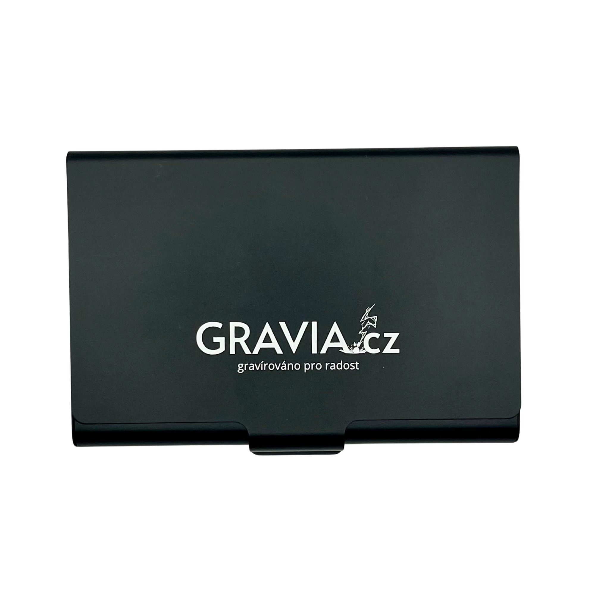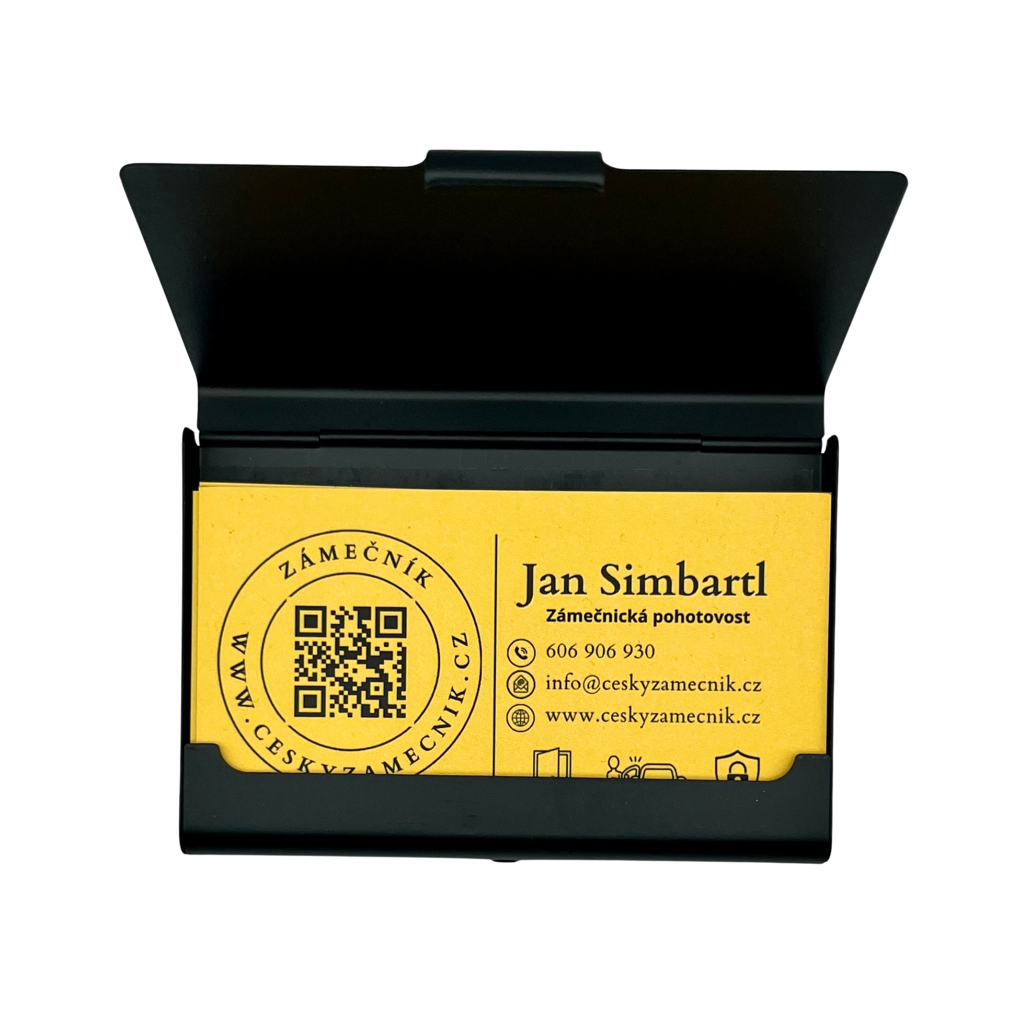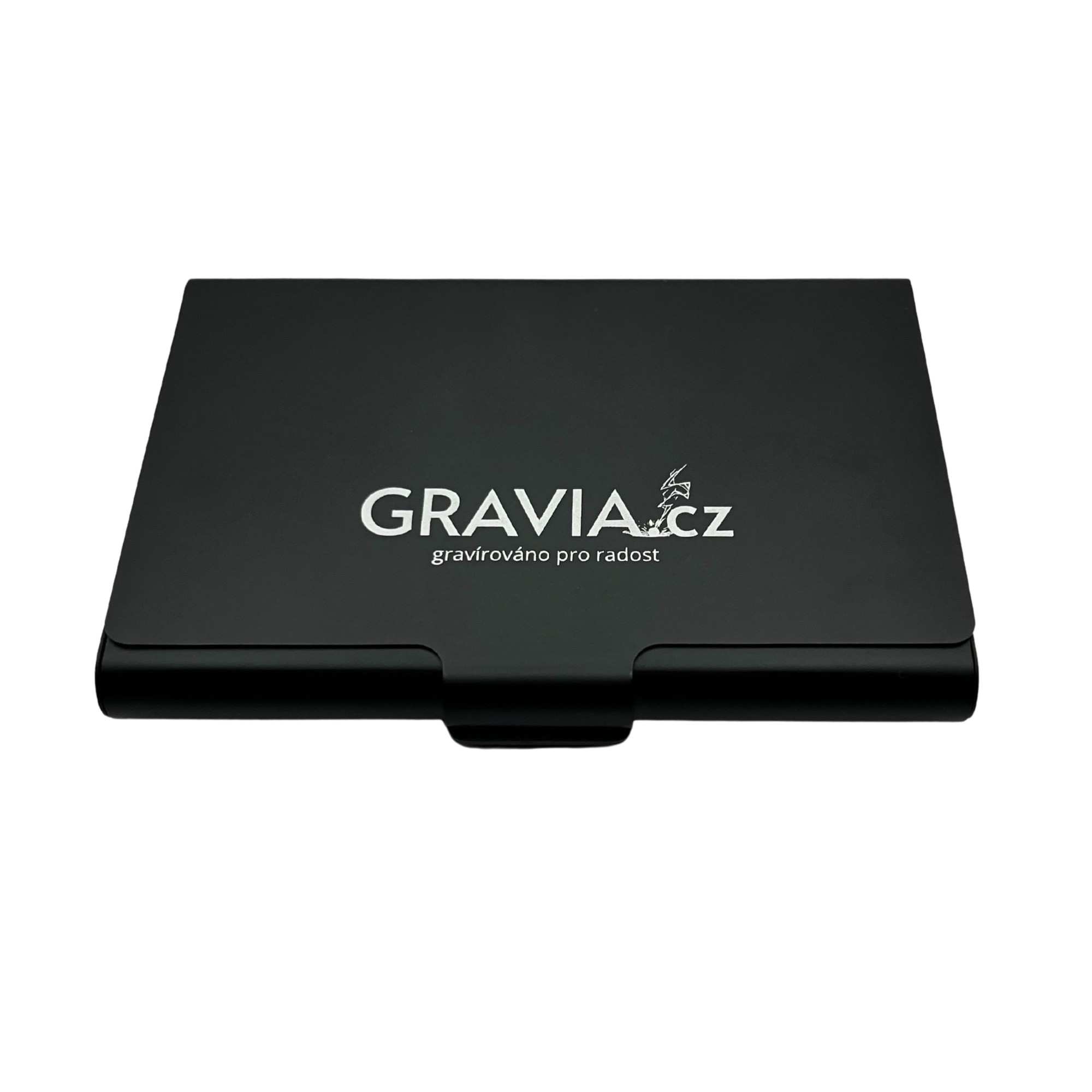 Hliníkový vizitkář – černý s vlastním textem nebo logem.